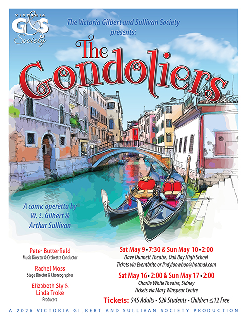 The Gondoliers Performances with Orchestra, Saturday, May 9 at 7:30pm & Sunday, May 10 at 2:00pm in Dave Dunnett Theatre and May 16 & 17 at 2:00pm in Charlie White Theatre